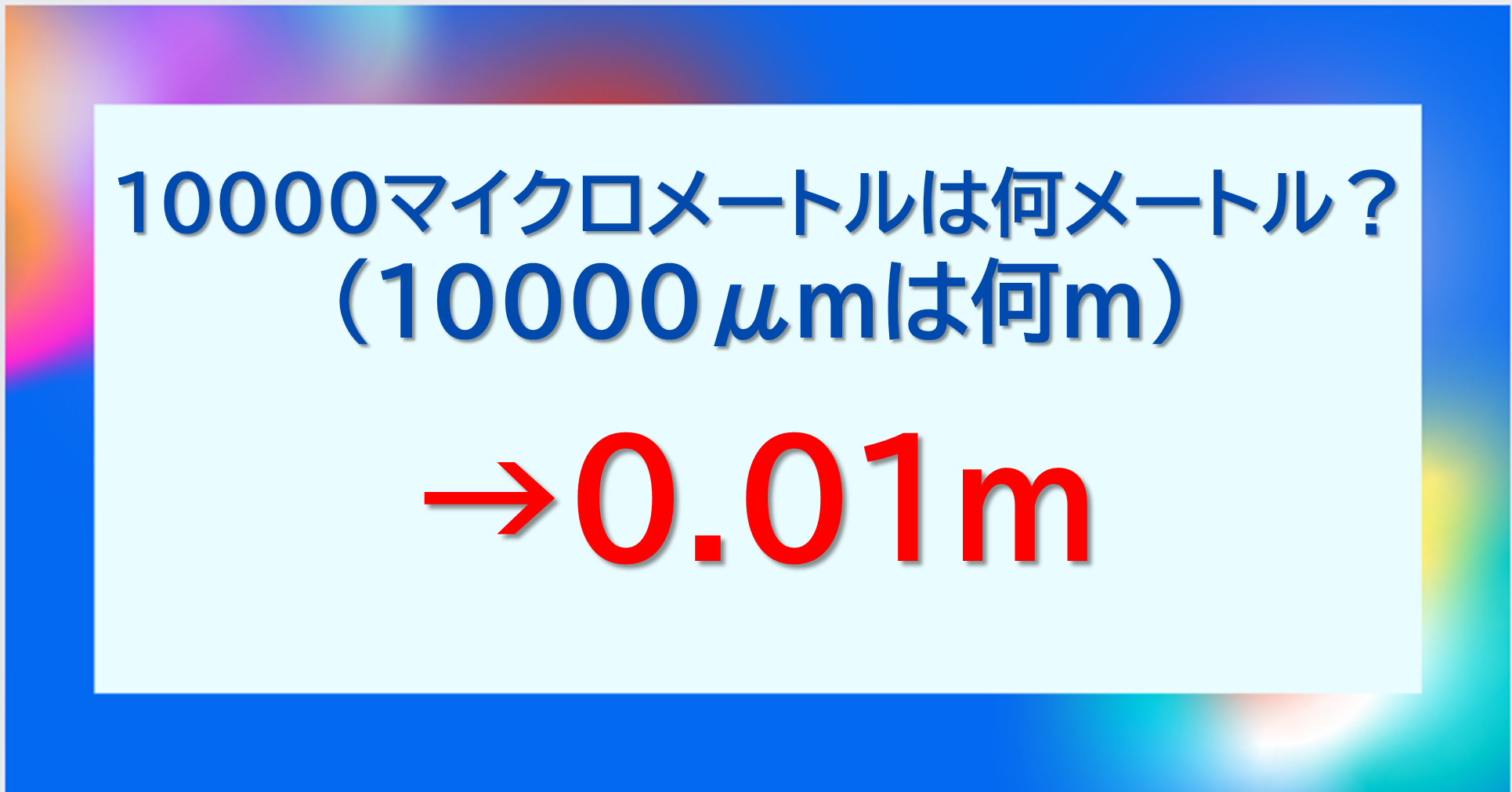 10000μm(マイクロメートル)は何メートル(m)か?変換・換算方法は?【10000マイクロメートル】