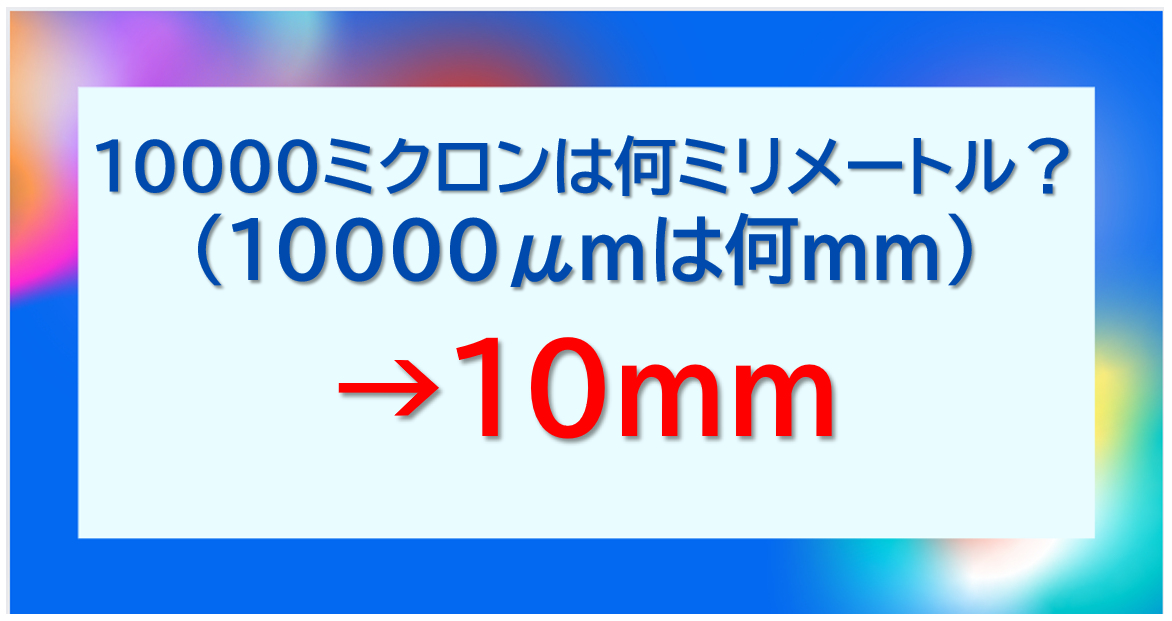 まずは、10000マイクロメートルはミリメートル(mm)かについて確認していきます。