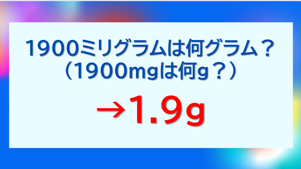 まずは、1900ミリグラム(mg)は何グラム(g)かについて確認していきます。