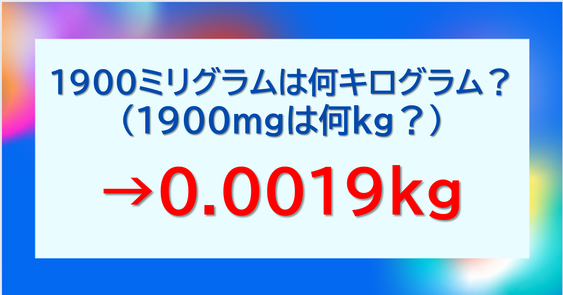 計算式:1900 ÷ 1000000 = 0.0019kg