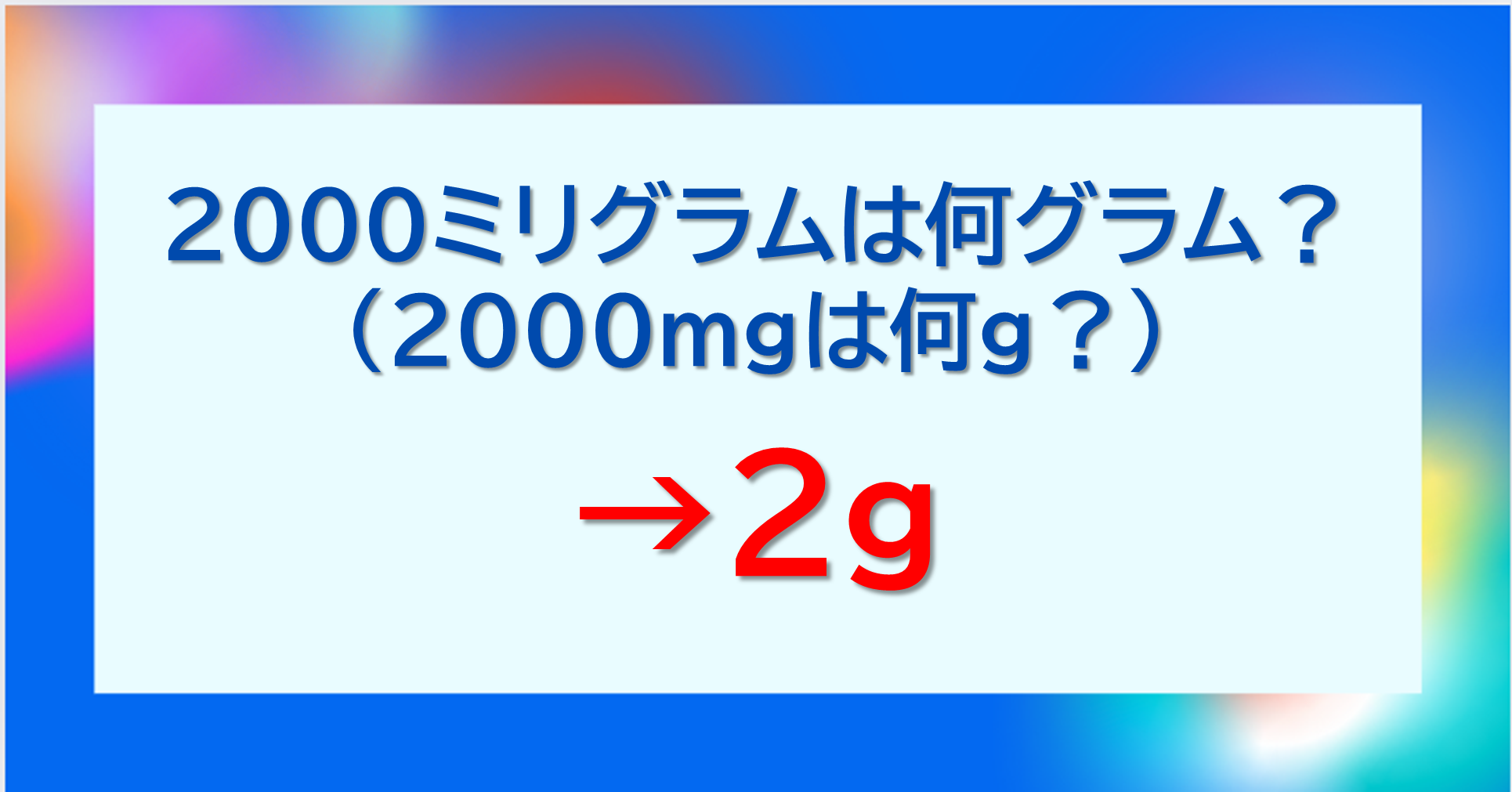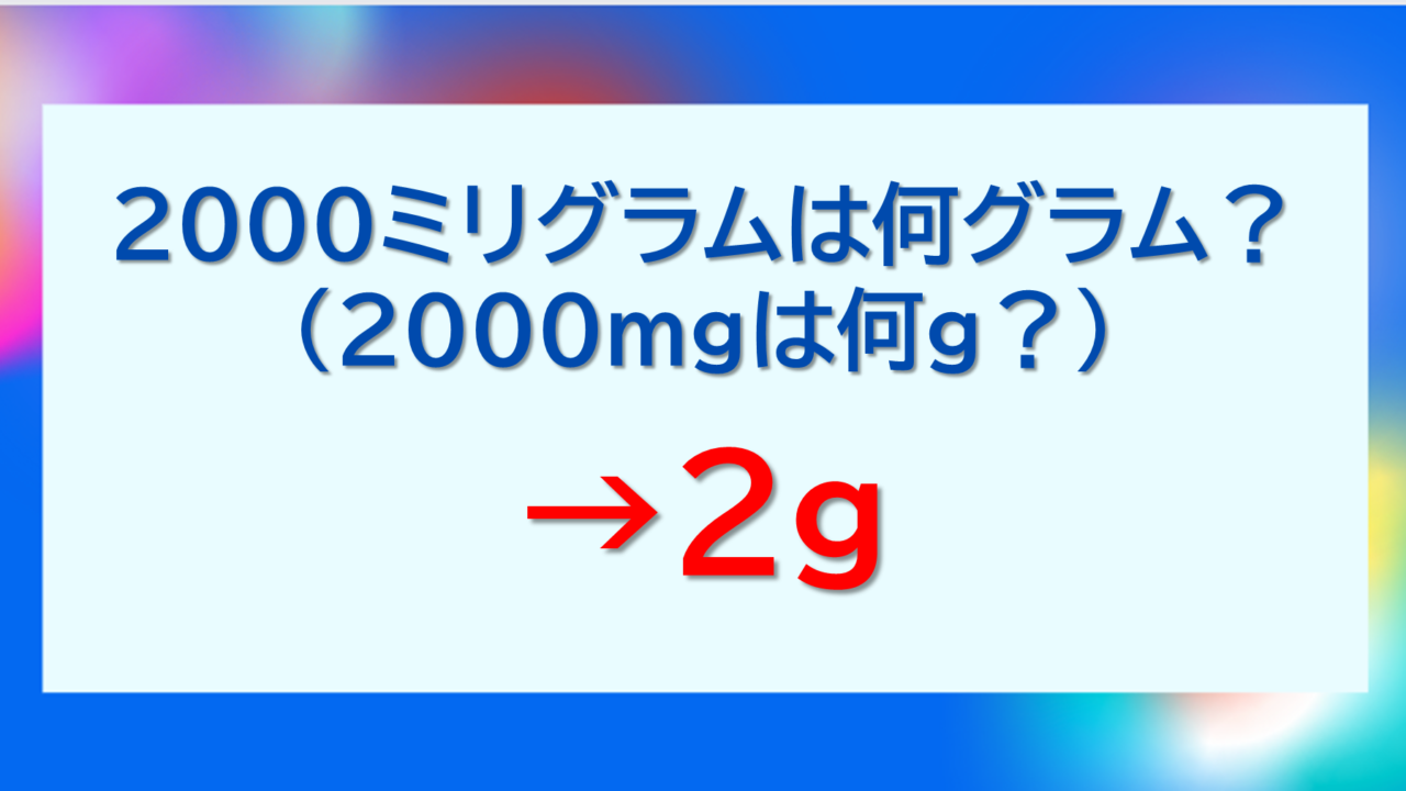 まずは、2000ミリグラム(mg)は何グラム(g)かについて確認していきます。
