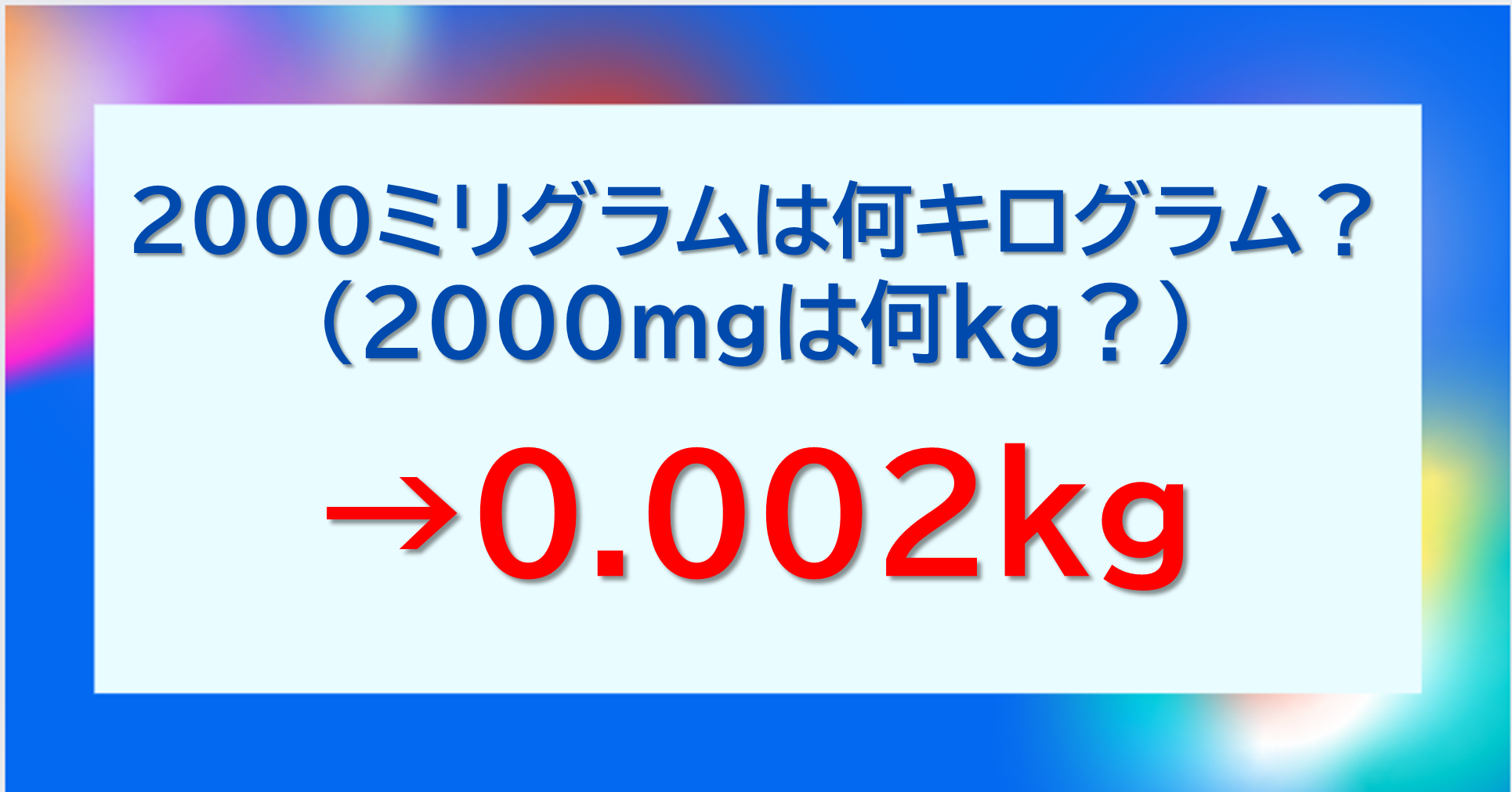 このような背景もあり、ここでは特に「2000ミリグラム(mg)」に着目して、2000ミリグラムはグラム(g)で何キログラム(kg)か?について解説していきます。