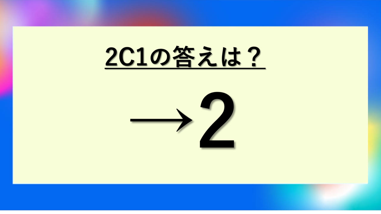 このように、2C1の場合は計算が非常にシンプルです。ただし、この基本的なプロセスをしっかり理解しておくことで、より大きな数の組み合わせを計算する際にも応用できるでしょう。