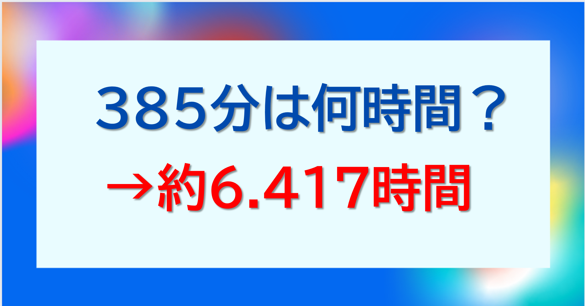 このような背景もあり、ここでは「385分」に注目し、385分は何時間か(小数や分数)?385分は何時間何分か?何秒か?について解説していきます。