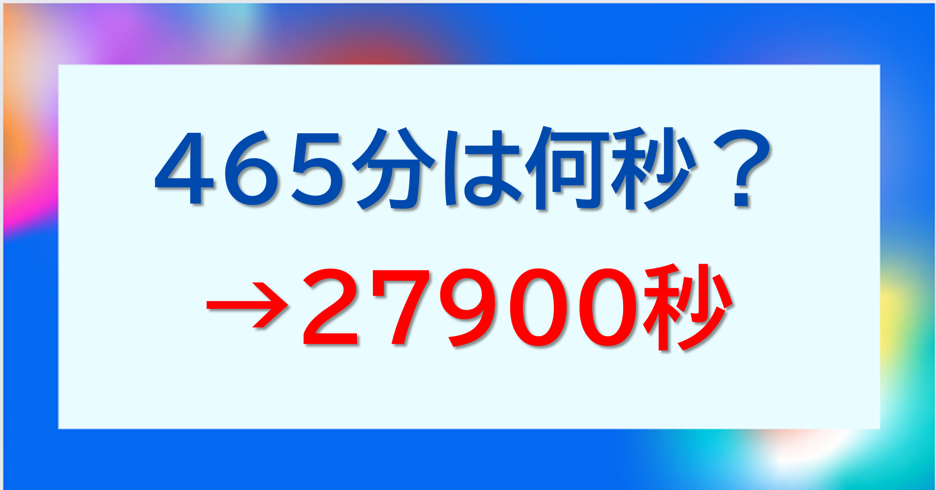 465分は何時間か(小数や分数)、465分は何時間何分か、何秒か?について解説しました。
