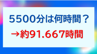 5000分は何時間か(少数と分数)、5000分は何時間何分か、何秒か?について解説しました。