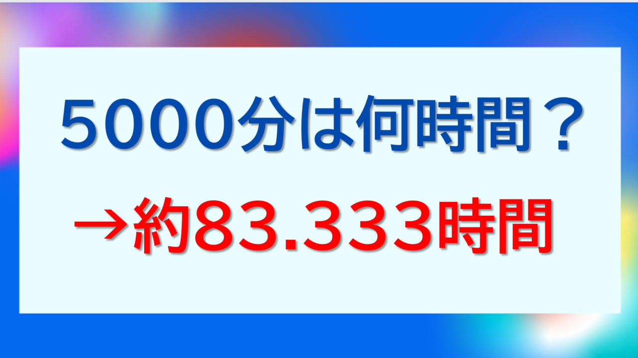 このような背景もあり、ここでは「5000分」に注目し、5000分は何時間か(小数や分数)?5000分は何時間何分か?何秒か?について解説していきます。