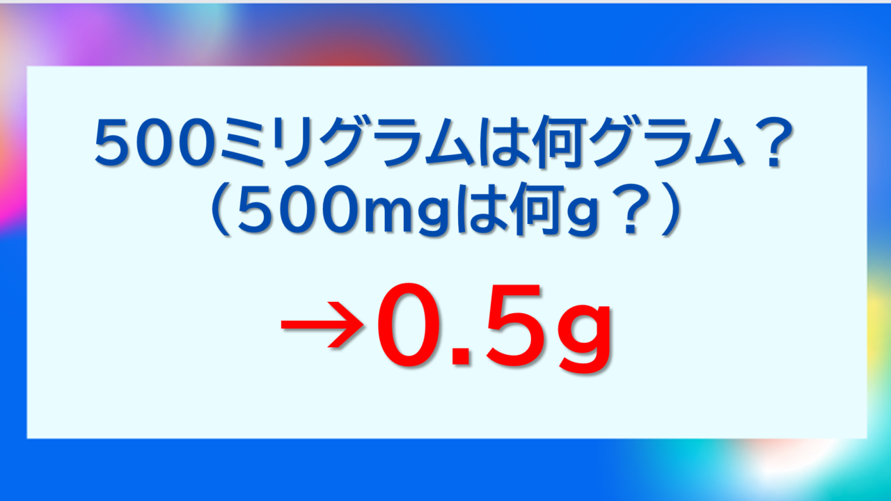 まずは、500ミリグラム(mg)は何グラム(g)かについて確認していきます。