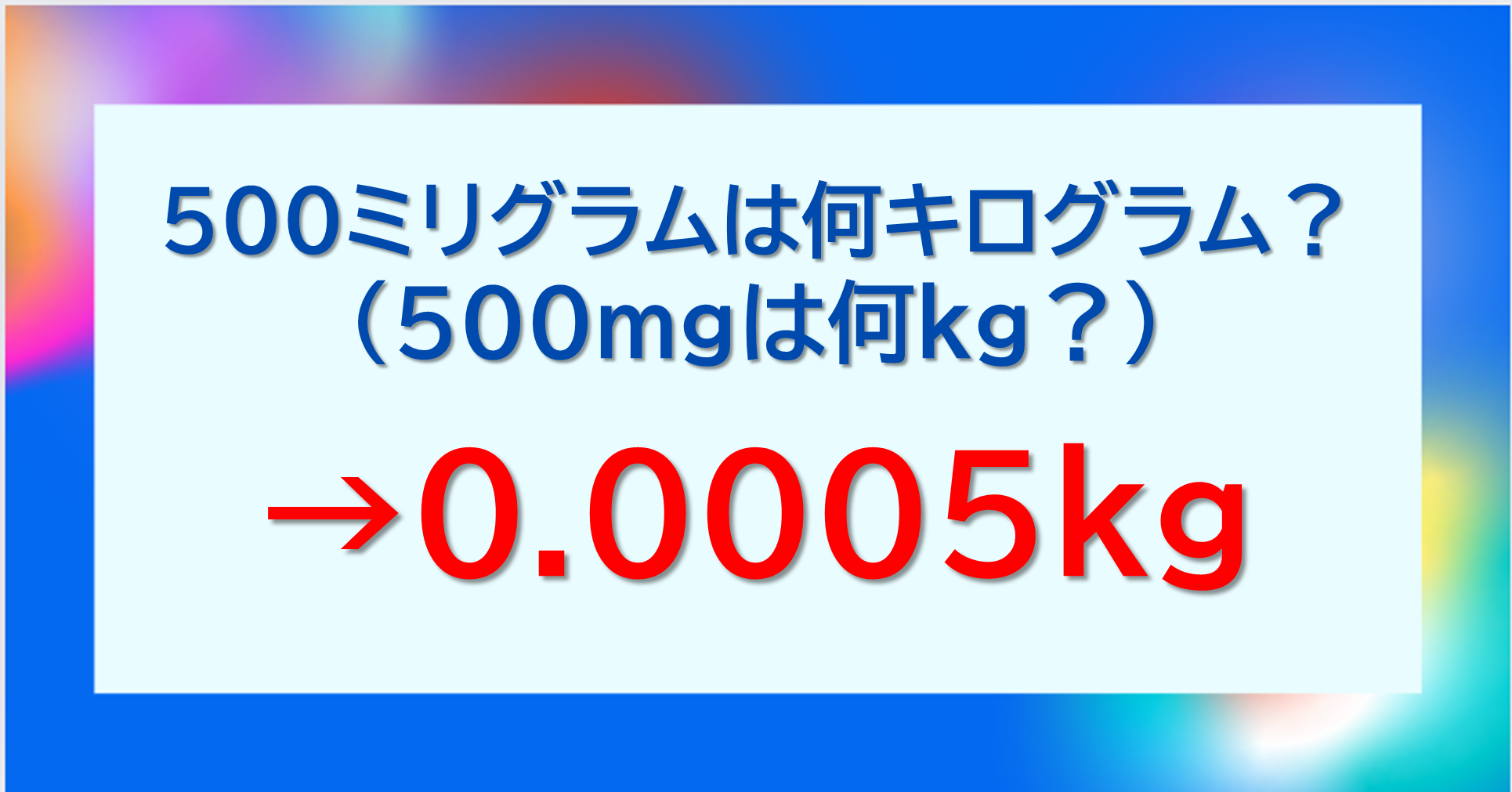 このような背景もあり、ここでは特に「500ミリグラム(mg)」に着目して、500ミリグラムはグラム(g)で何キログラム(kg)か?について解説していきます。