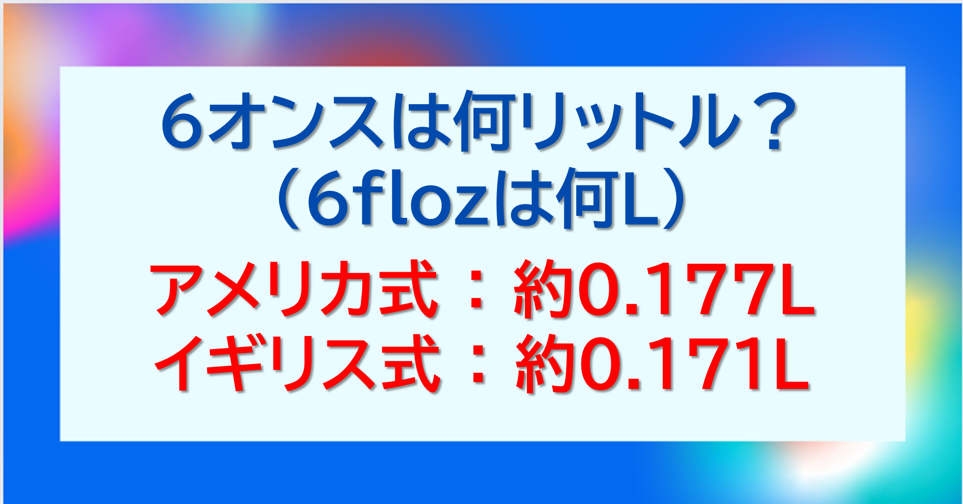 さらには、6オンスが何L(リットル)かについても見ていきましょう(^^)/