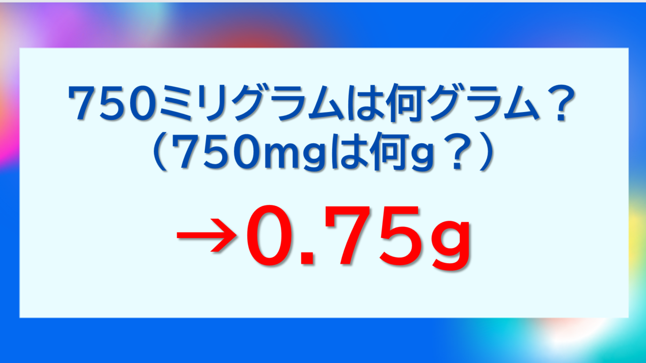 まずは、750ミリグラム(mg)は何グラム(g)かについて確認していきます。