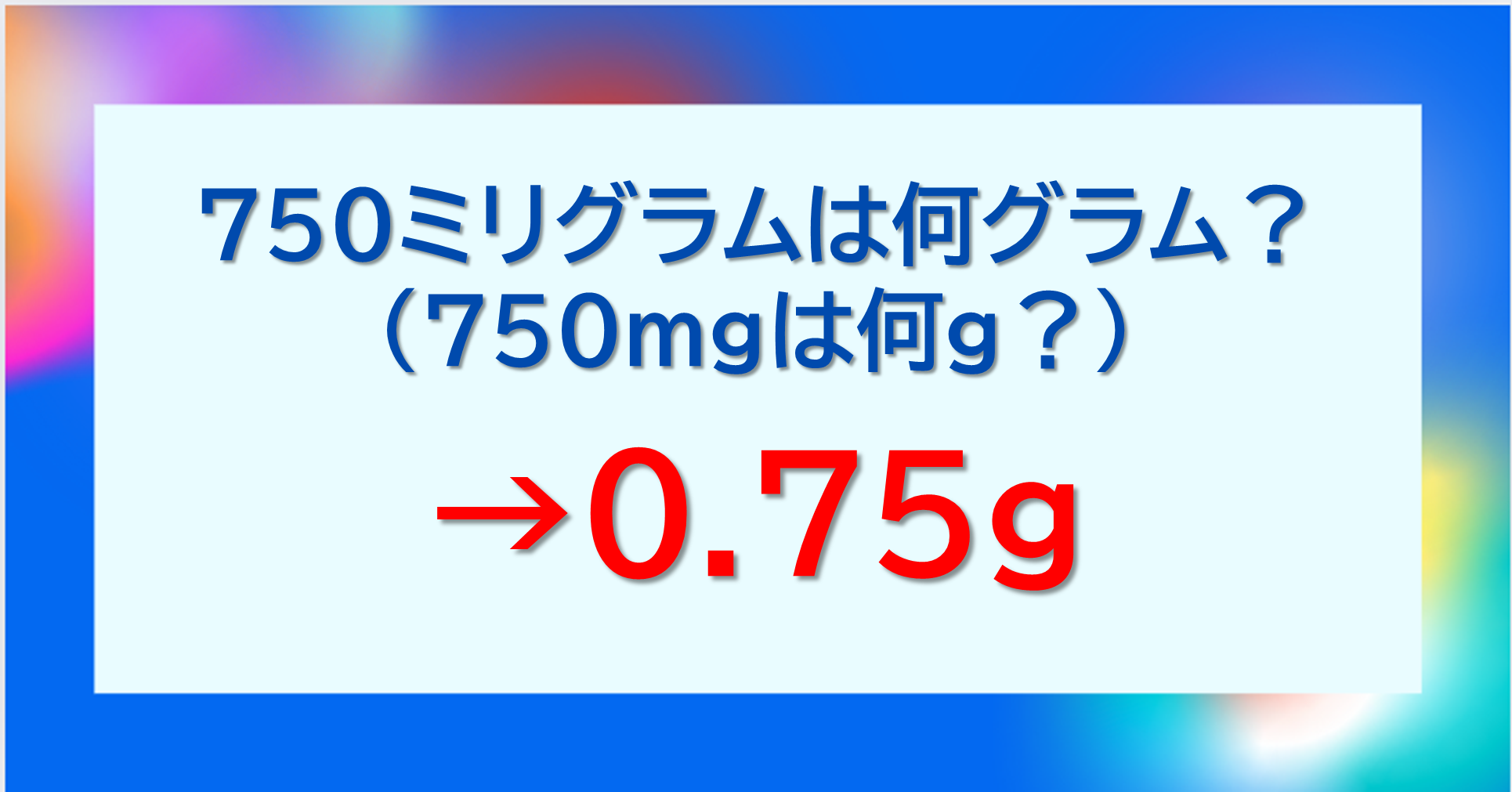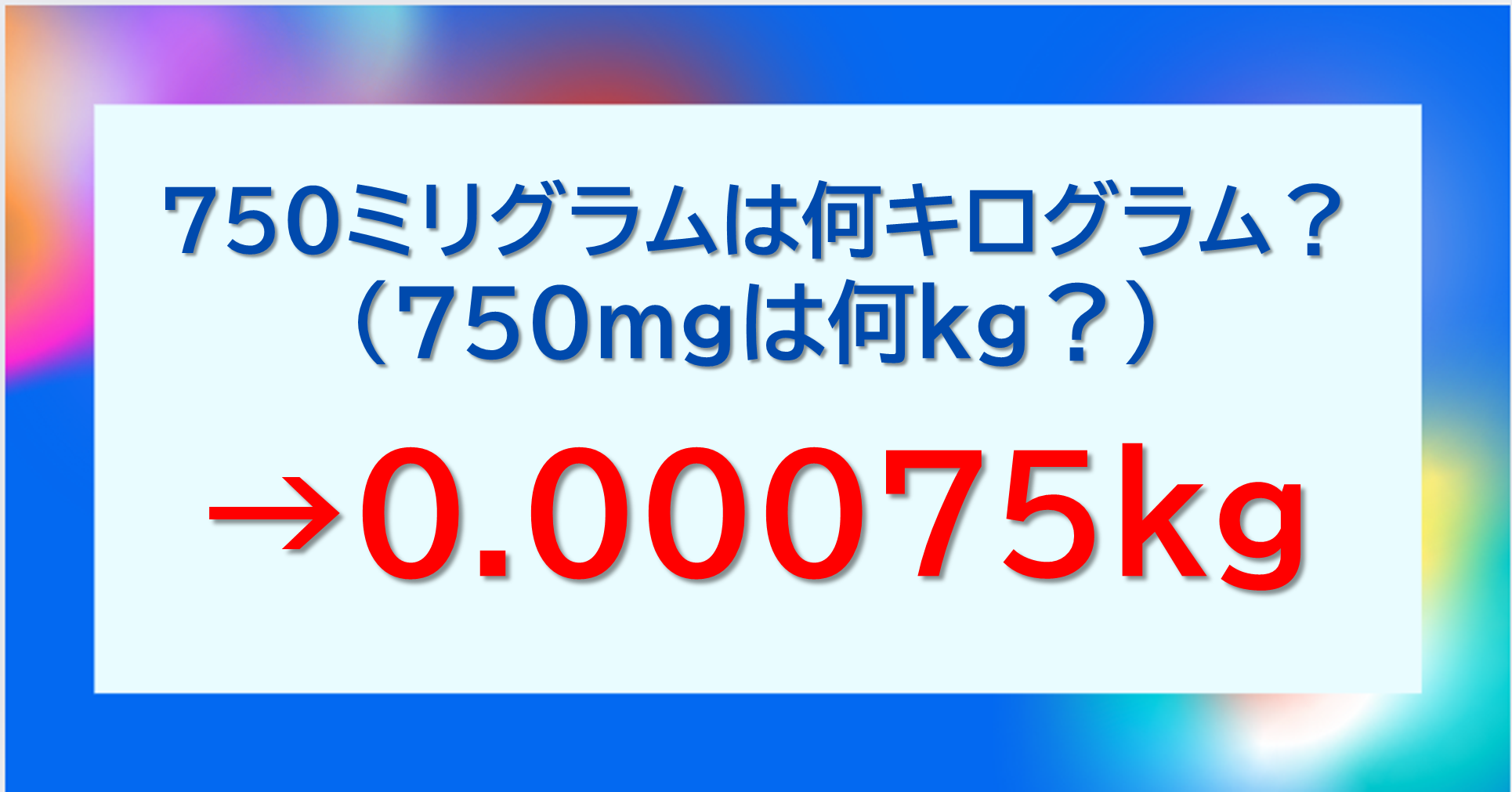 このような背景もあり、ここでは特に「750ミリグラム(mg)」に着目して、750ミリグラムはグラム(g)で何キログラム(kg)か?について解説していきます。