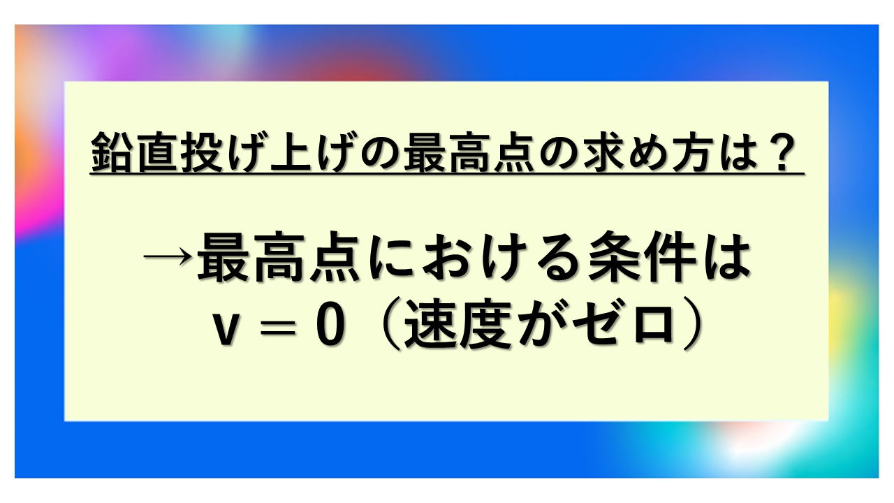 最高点における条件は v = 0(速度がゼロ)
