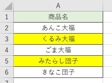 コードを保存したら、エクセルに戻ります。色を付けたい範囲を選択し、「マクロの実行」ボタンをクリックすると、1行おきに黄色の背景色が付きます。