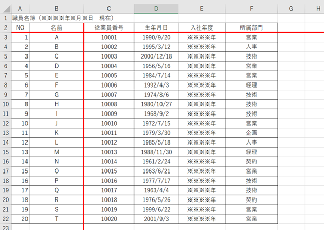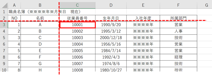 最後に、最初の2行・2列を常に表示する方法を説明していきます。