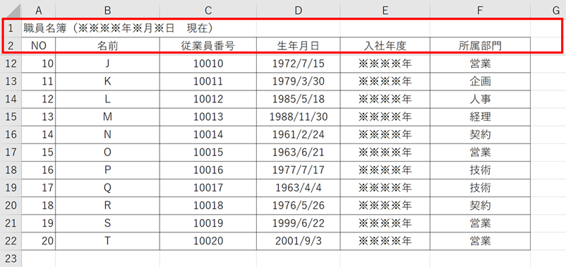 そうすると下にスクロールしても、1行目と2行目が常に表示されるようになります。