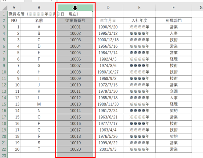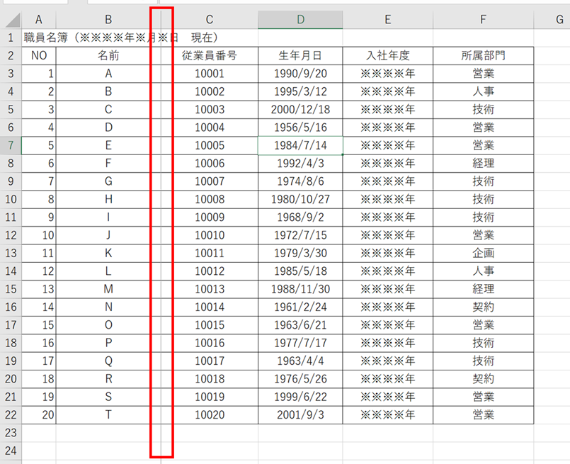 下の図だと、2列目(B列)の次が4列目(D列)になっているのが分かるかと思います。