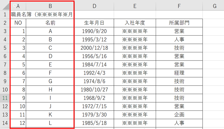次に、エクセルで最初の2列を常に表示する方法を説明していきます。
