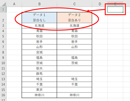 (データ1 空白なし)に移動します。