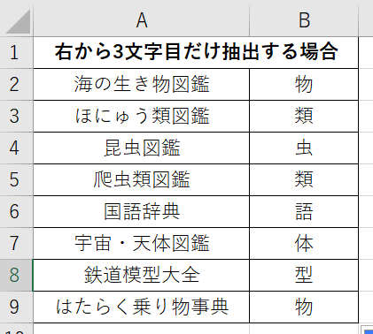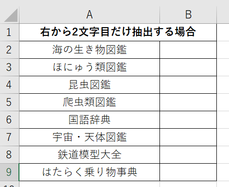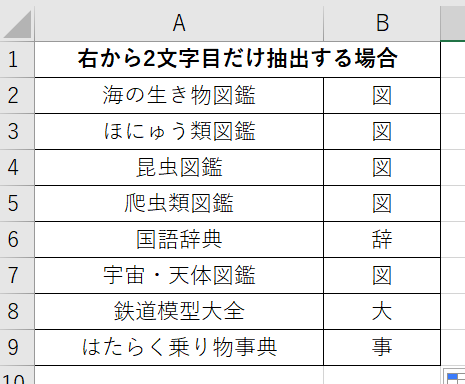 以下のサンプルを使って、右から2文字目だけの抽出方法を見ていきましょう。