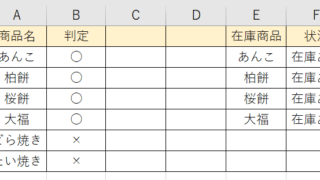 C1に「カテゴリ」と入力し、C2からC7に商品カテゴリ(焼き物、焼き物、餅類、餅類、餅類、餅類)を入力してください。