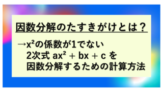 たすきがけとは、ax² + bx + c 型(a≠1)の式を因数分解する方法です。x²の係数が1でない場合に特に有効な手法となります。