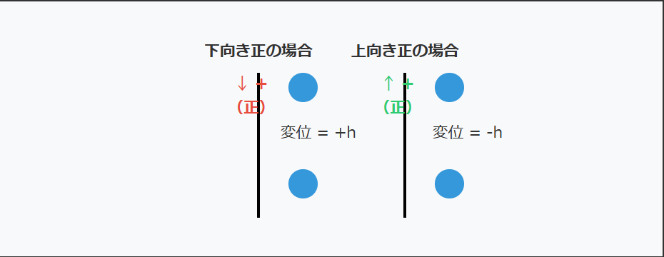 座標系と変位の符号
