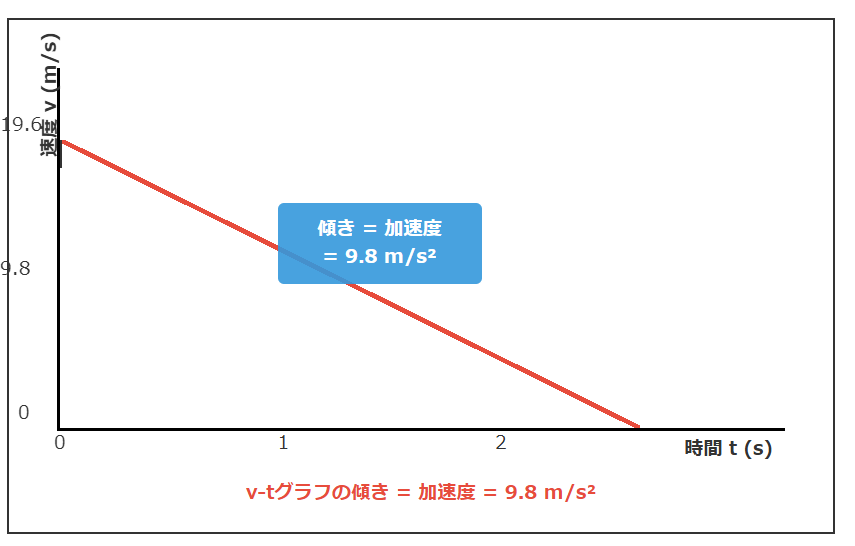 v-tグラフの傾き = 加速度 = 9.8 m/s²