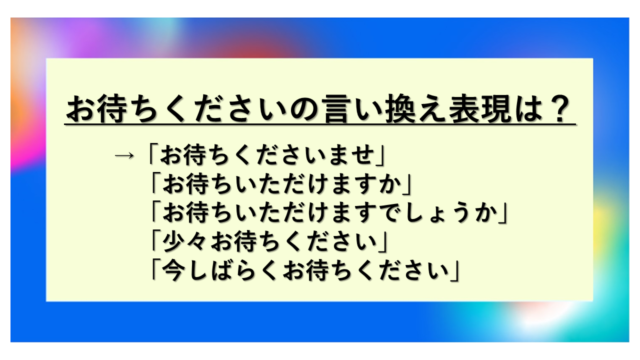 接客業では、お客様を待たせる場面が多く発生します。ホスピタリティ精神を表現しながら、丁寧に待機をお願いすることが重要でしょう。