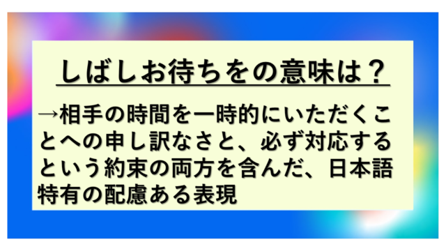 本記事では、「しばらくお待ちください」の英語表現をビジネスシーンで適切に使用するための方法を、具体的な例文とともに詳しく解説していきます。国際的なコミュニケーションを円滑にするために、ぜひ参考にしてください。