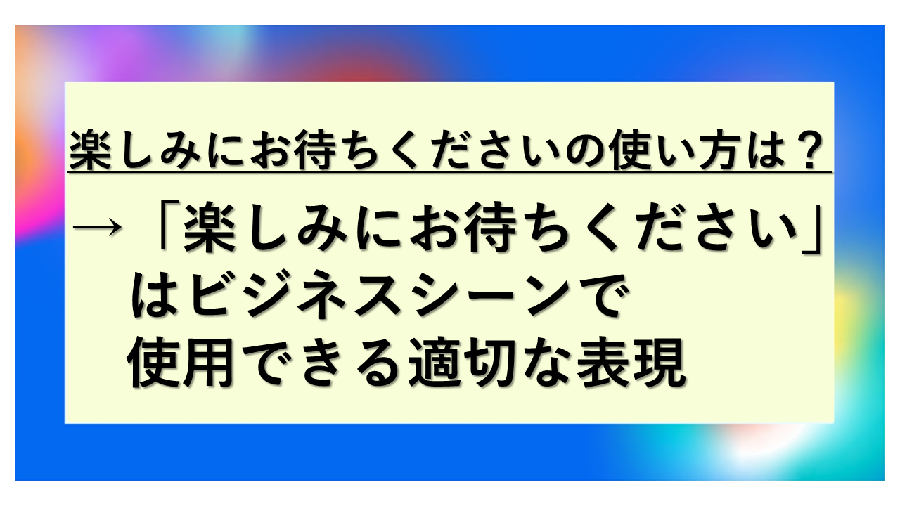 それではまず、「楽しみにお待ちください」という表現がビジネスシーンで使用できる適切な言葉なのかについて解説していきます。