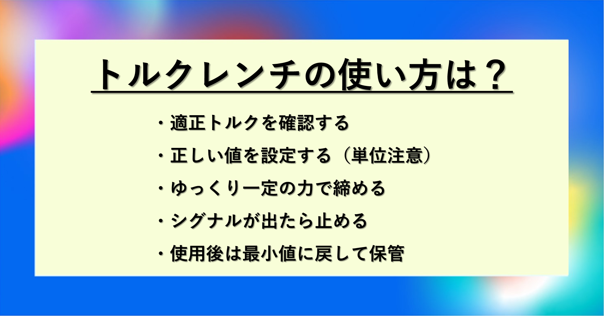 正しい知識を身につければ、トルクレンチは決して難しい工具ではありません。安全で確実な締め付け作業を実現するために、ぜひ最後まで読んでください。